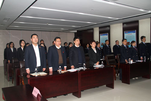會(huì)議現(xiàn)場(chǎng)全體黨員起立奏唱國(guó)歌