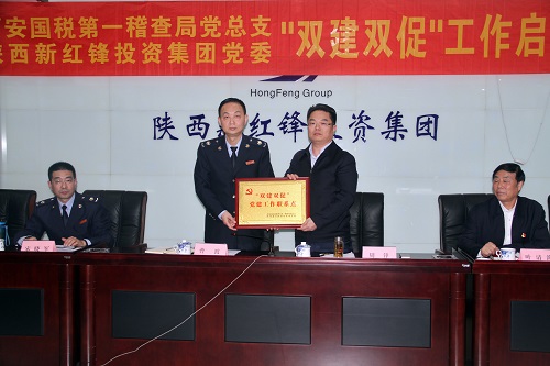 市國(guó)稅稽查局授予陜西新紅鋒投資集團(tuán)黨委聯(lián)絡(luò)點(diǎn)牌匾