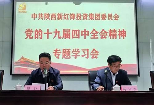 11月15日下午,為了迅速掀起學(xué)習(xí)貫徹黨的十九屆四中全會(huì)精神熱潮,推動(dòng)“不忘初心、牢記使命”主題教育深入開(kāi)展,陜西新紅鋒投資集團(tuán)黨委在集團(tuán)黨校召開(kāi)了黨的十九屆四中全會(huì)精神專(zhuān)題學(xué)習(xí)會(huì),集團(tuán)在家黨員及部分管理干部共六十余人參加了專(zhuān)題學(xué)習(xí)會(huì)。