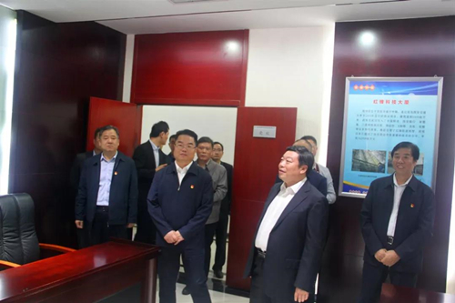 在新紅鋒集團(tuán)總部,集團(tuán)黨委書記周鋒、黨委副書記、副總裁葉清海帶領(lǐng)劉其智一行視察了企業(yè)黨建文化墻、黨校、黨員活動室、軍資庫,查閱了黨委工作資料。