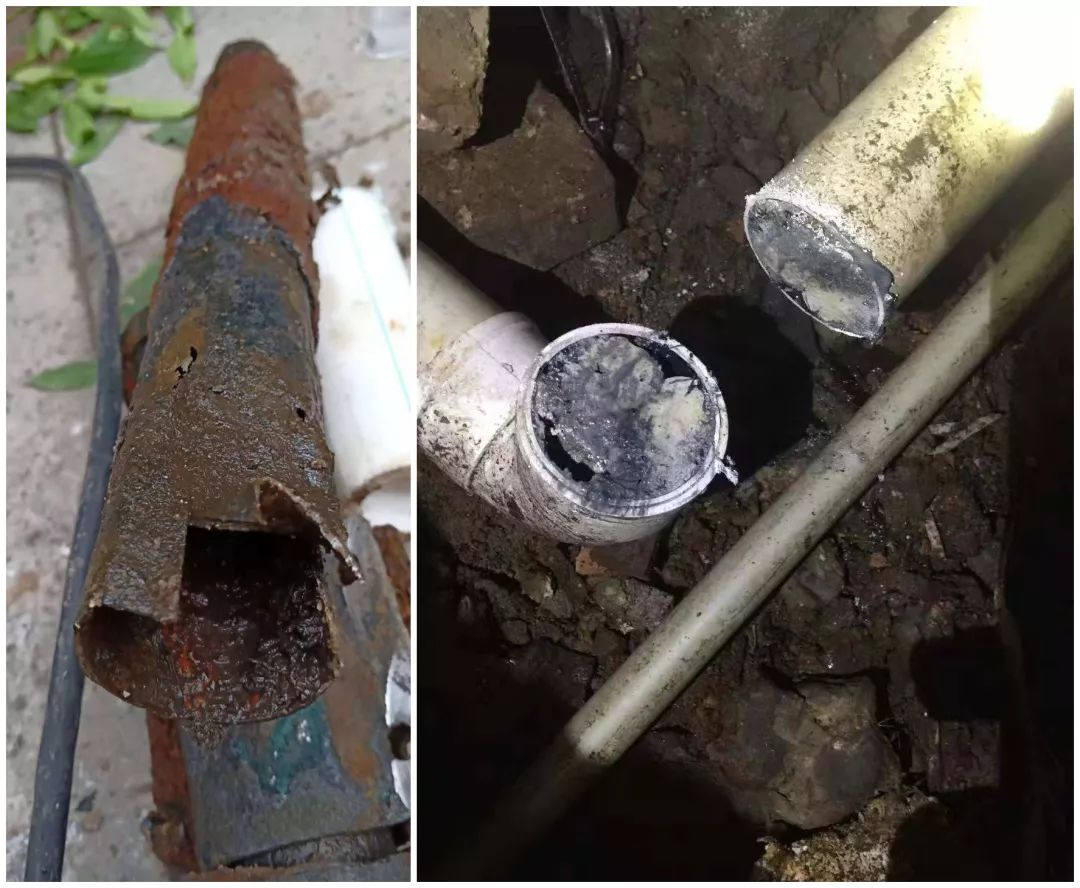 現(xiàn)場(chǎng)拆除的嚴(yán)重堵塞和腐爛的部分管道