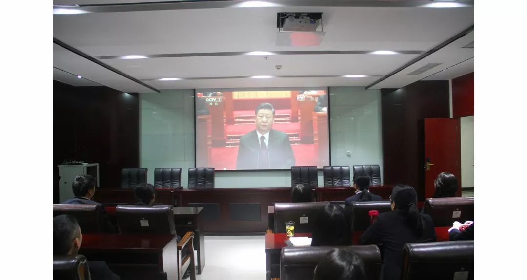 集團(tuán)機(jī)關(guān)和康橋地產(chǎn)黨支部收看大會(huì)現(xiàn)場(chǎng)一