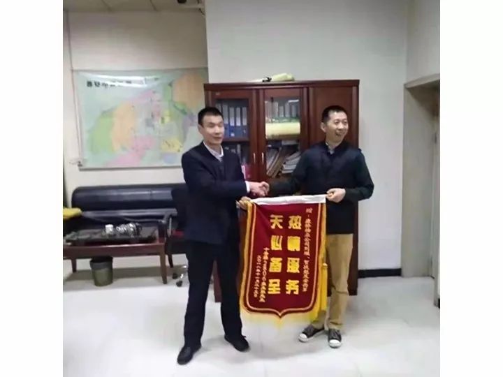 業(yè)主張曉輝向物業(yè)公司副總經(jīng)理馬剛贈(zèng)送錦旗
