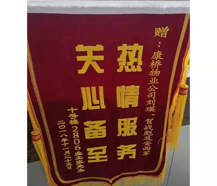 幾天來(lái),張曉輝全家感激之情久久不能平靜。他們作為異鄉(xiāng)人來(lái)西安工作生活,人生地不熟,康橋物業(yè)人急業(yè)主所急,想業(yè)主所想,不是親人勝似親人,對(duì)于物業(yè)的貼心關(guān)照,他一定要用一種形式道出他的心聲,于是就有了寫(xiě)感謝信、送錦旗的一幕。