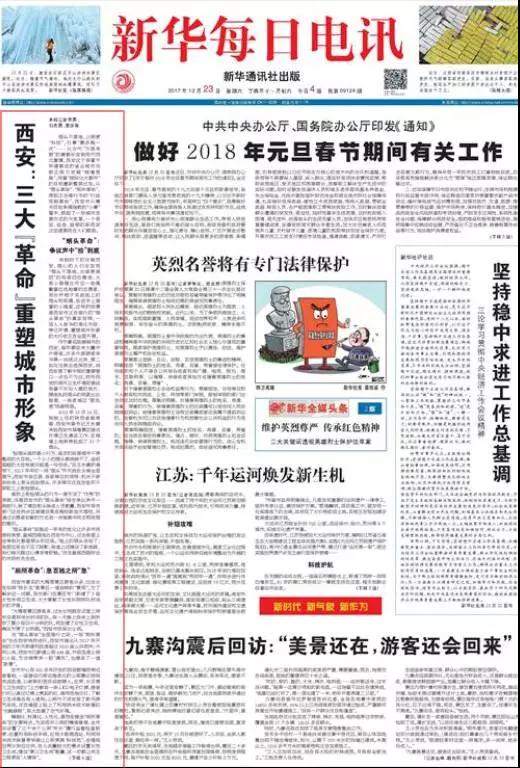 12月23日,新華社刊發(fā)《西安:三大革命重塑城市形象》一文,文章寫道:“煙頭不落地,公廁更‘科技’,辦事‘最多跑一次’……”