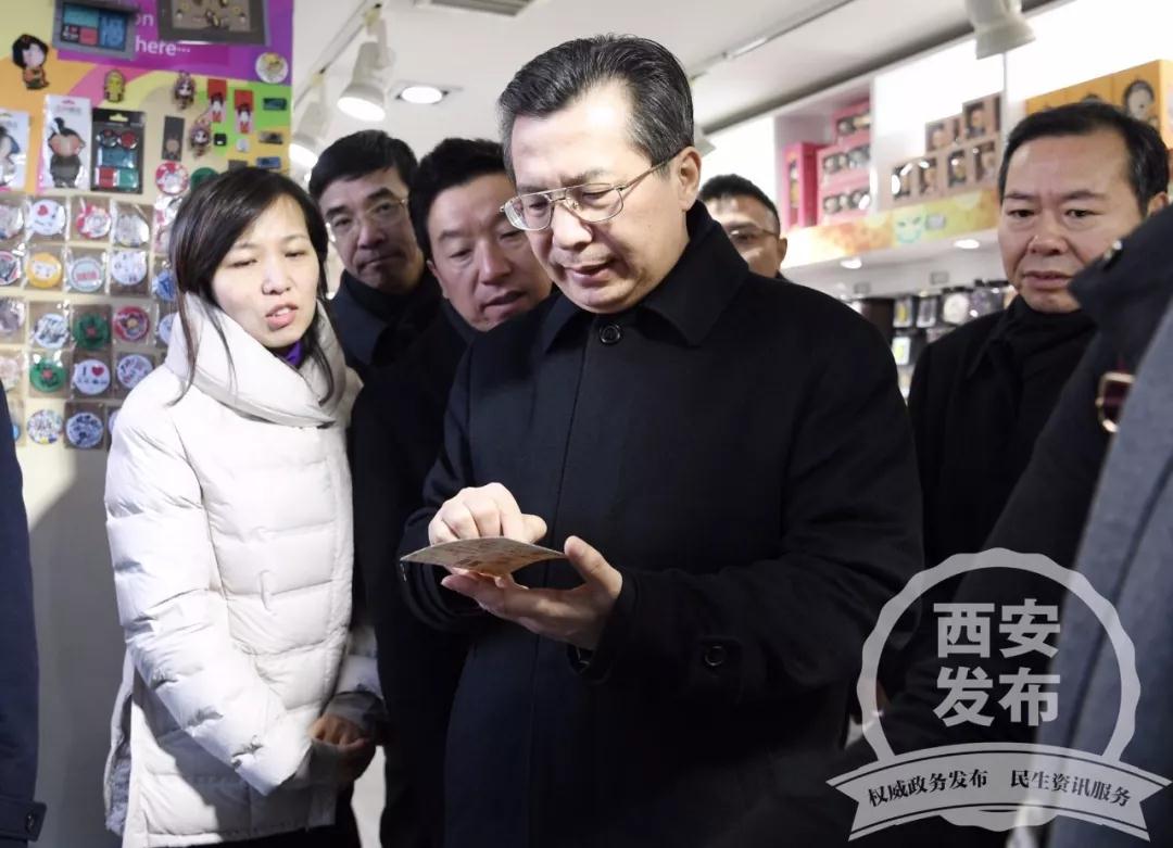 在“城墻故事”主題旅游紀念品店,永康書記饒有興致地參觀店內(nèi)的兵馬俑玩偶、鑰匙鏈、帆布包、印章、明信片等極具西安韻味的文創(chuàng)產(chǎn)品。