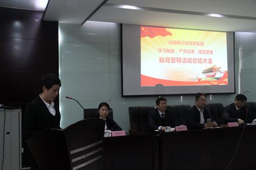 11月29日下午,陜西新紅鋒投資集團在總部辦公樓召開了“學習制度、嚴肅紀律、規(guī)范管理”教育整頓活動總結大會,會議由集團黨委書記葉青海同志主持。