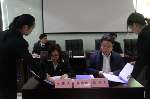會前,集團董事長周鋒同志、集團總經理李文武同志、集團常務副總裁張紅梅同志分別與各高管簽訂了《員工從業(yè)廉潔自律承諾書》、《禁酒令承諾書》。