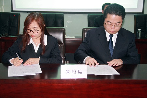 集團(tuán)董事長(zhǎng)、總裁周鋒與總裁助理張義蘭簽訂總裁辦目標(biāo)責(zé)任書