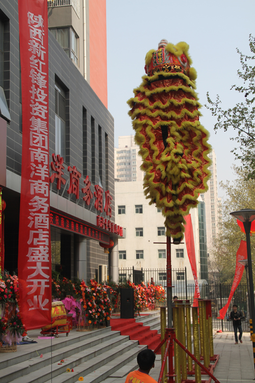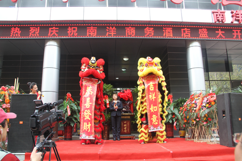 上午10點(diǎn)半鐘,主持人宣布酒店開(kāi)業(yè)的話(huà)音未落,在一陣禮炮聲中,南洋商務(wù)酒店開(kāi)業(yè)慶典儀式徐徐拉開(kāi)了帷幕。首先,集團(tuán)黨委書(shū)記葉清海同志發(fā)表了熱情洋溢的講話(huà),緊接著進(jìn)入了畫(huà)龍點(diǎn)睛環(huán)節(jié),由陜西新紅鋒投資集團(tuán)常務(wù)副總裁張紅梅女士、南洋商務(wù)酒店董事劉曉飛女士共同為雄獅點(diǎn)睛并封上紅包。片刻間,一對(duì)雄獅睜開(kāi)雙眼,高高躍起,現(xiàn)場(chǎng)掌聲雷動(dòng),慶典活動(dòng)氣氛被推至高潮,也預(yù)示著酒店開(kāi)業(yè)的吉兆。緊接著,最激動(dòng)人心的剪彩儀式隨之到來(lái),陜西新紅鋒投資集團(tuán)總裁周鋒、常務(wù)副總裁張紅梅,南洋商務(wù)酒店董事韓勝彬、劉曉飛、集團(tuán)黨委書(shū)記葉清海、副總裁李文武、南洋商務(wù)酒店執(zhí)行總經(jīng)理高奇等領(lǐng)導(dǎo)共同擔(dān)任了剪彩嘉賓。剪彩儀式結(jié)束后,現(xiàn)場(chǎng)進(jìn)行了舞獅表演。上午11點(diǎn)半,整個(gè)開(kāi)業(yè)慶典儀式落下了帷幕。