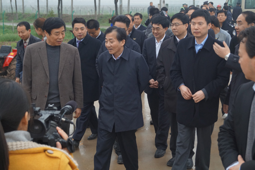 2015年3月25日上午11:00時,農(nóng)業(yè)部副部長陳曉華,農(nóng)業(yè)部農(nóng)產(chǎn)品質量安全監(jiān)管局局長馬愛國,副局長程金根,省政府副秘書長王拴虎,省農(nóng)業(yè)廳廳長白宜勤,副廳長王韜,省廳農(nóng)產(chǎn)品質量安全監(jiān)管局局長張日成,副局長徐長林,寶雞市政府市長錢引安,副市長景耀平,市農(nóng)業(yè)局局長張周讓,副局長張曉軍,扶風縣委書記周宇松,縣長陳愛民,副縣長王小龍,縣農(nóng)業(yè)局長葛宏博等一行20余人在集團總裁周鋒、黨委書記農(nóng)業(yè)公司董事長葉清海、總裁助理王彥濤的陪同下調研考察了紅鋒萬畝獼猴桃產(chǎn)業(yè)示范園項目。