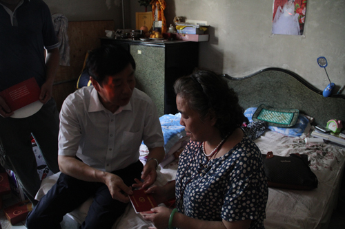陜西新紅鋒投資集團(tuán)黨委在開(kāi)展黨的群眾路線教育實(shí)踐活動(dòng)中,接地氣、做實(shí)事。關(guān)心社區(qū)貧困群眾,在得知低保戶孫玉茹老人孤苦伶仃,常年有病,生活困難時(shí),公司總裁周鋒極為同情,當(dāng)即確定為公司的長(zhǎng)期幫扶對(duì)象。2014年6月16日,集團(tuán)黨委書(shū)記葉清海同志、團(tuán)委書(shū)記劉茹等同志在社區(qū)黨支部書(shū)記呼延玉平等幾位同志的協(xié)助陪同下,看望了孫玉茹老人。葉清海書(shū)記詳細(xì)了解了老人的生活、健康情況,詢問(wèn)了平時(shí)生活中的困難,現(xiàn)場(chǎng)幫助解決了老人拖欠了多年的醫(yī)保費(fèi)用1000元,安排公司集團(tuán)團(tuán)委組織志愿者定期為老人做義工,并給老人送去了米面油等生活用品,孫玉茹老人深為感動(dòng),社區(qū)也為公司的義舉表示感謝!
