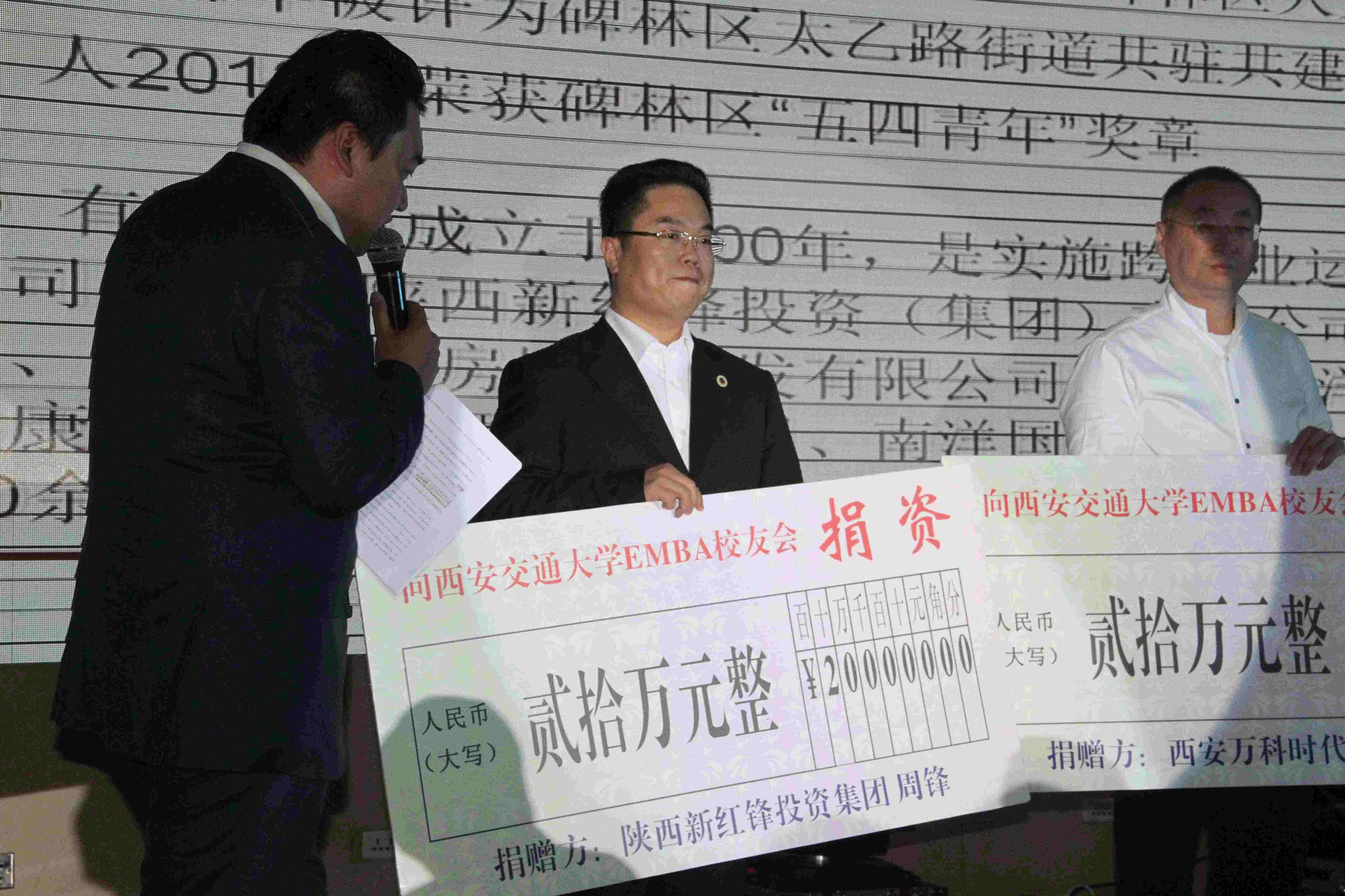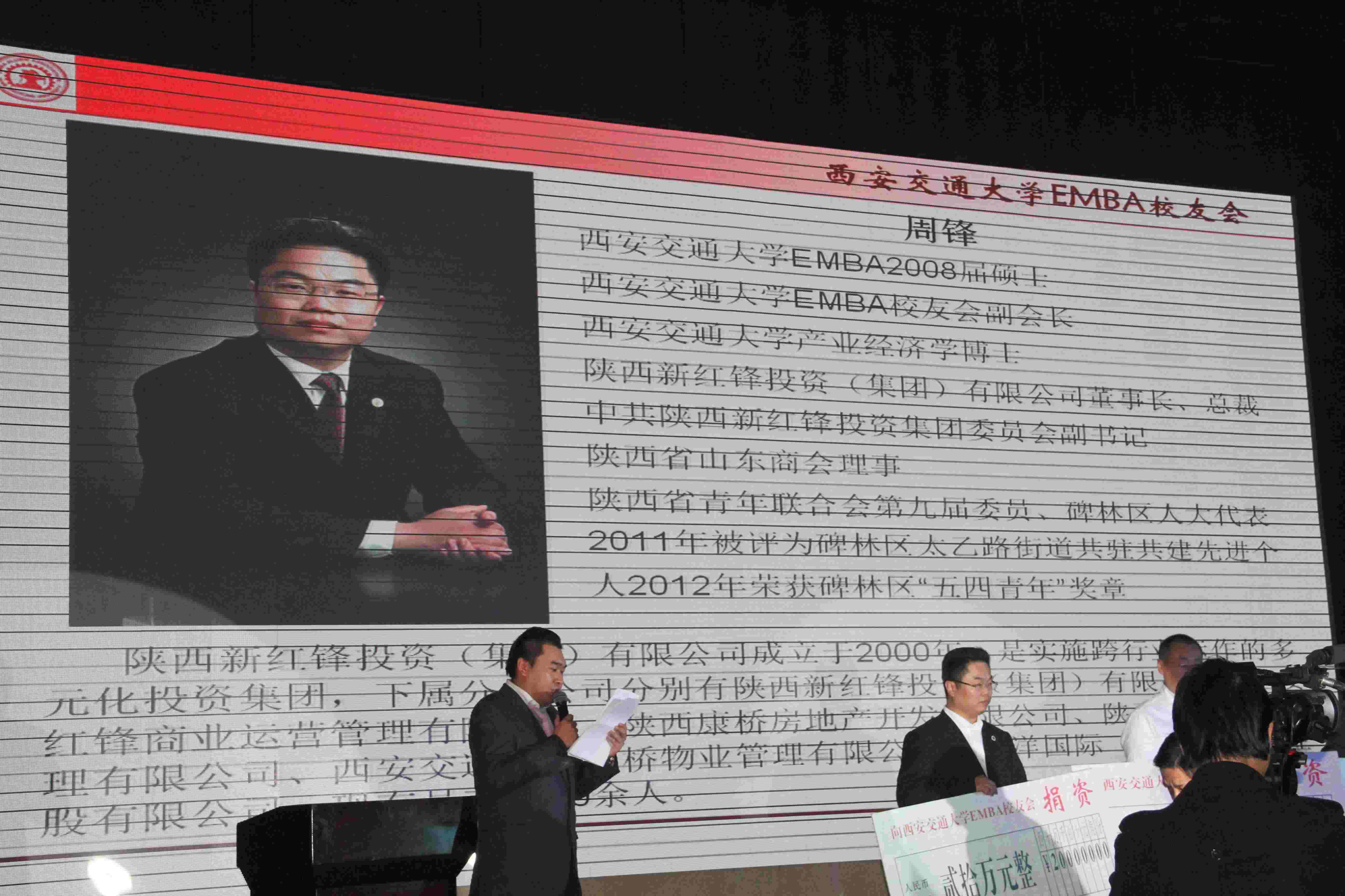 2013年12月14日,集團(tuán)總裁周鋒參加了西安交通大學(xué)管理學(xué)院EMBA校友會(huì)年會(huì)。此次年會(huì)上,周鋒總裁以陜西新紅鋒投資集團(tuán)的名義向校友會(huì)捐資貳拾萬元整,周總表示:飲供流者懷其源,希望通過他本人的捐助,能帶動(dòng)更多校友參與到學(xué)校的發(fā)展當(dāng)中,這些資金能使交大管理學(xué)院的辦學(xué)水平逐步提高,走向全國(guó)高校前列,為國(guó)家、為社會(huì)培養(yǎng)出更多的人才。