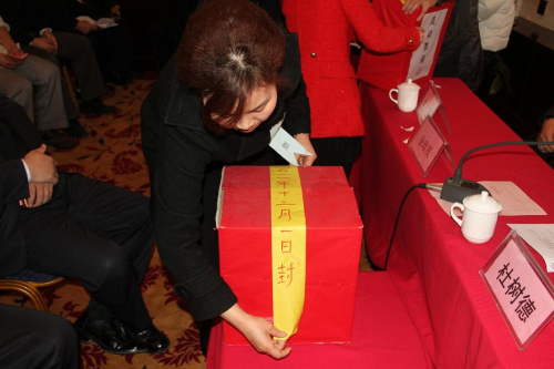 監(jiān)票人員現(xiàn)場(chǎng)查驗(yàn)并貼封票箱