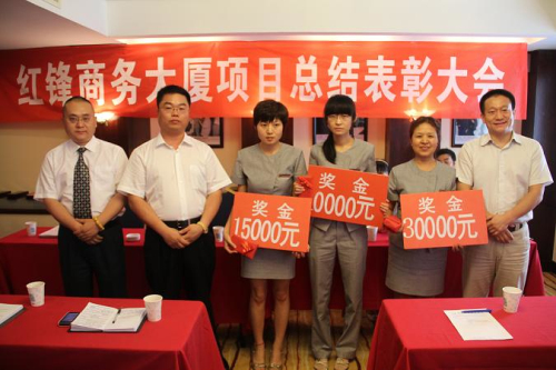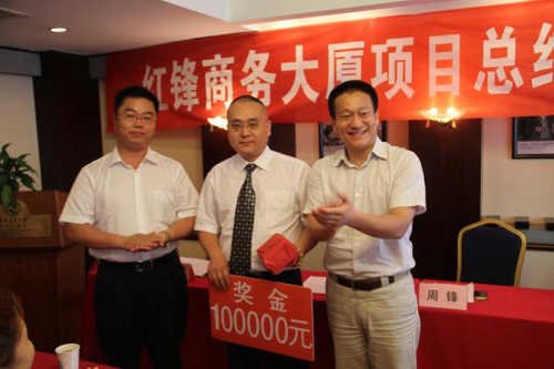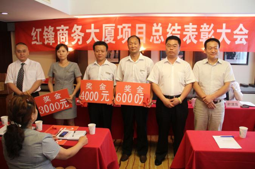 2011年8月12日,對(duì)“紅鋒商務(wù)大廈”項(xiàng)目的工作人員來(lái)說(shuō)是一個(gè)很不平凡的一天,“紅鋒商務(wù)大廈”歷經(jīng)了兩年多的風(fēng)風(fēng)雨雨,在全體員工的不懈努力下,上下團(tuán)結(jié)一致,堅(jiān)定信心,迎難而上,克服重重困難,根據(jù)集團(tuán)所定的奮斗目標(biāo)和工作思路,加快推進(jìn)了“紅鋒商務(wù)大廈”項(xiàng)目的建設(shè)進(jìn)程,全面完成了各項(xiàng)規(guī)劃任務(wù),終于進(jìn)入正常運(yùn)轉(zhuǎn)階段。而今天的成績(jī)與該項(xiàng)目全體員工的辛勤努力是分不開(kāi)的,為此,集團(tuán)拿出近20萬(wàn)的資金對(duì)在此項(xiàng)目中作出突出貢獻(xiàn)的副總裁兼該項(xiàng)目負(fù)責(zé)人劉永峰等七名員工,給予表彰獎(jiǎng)勵(lì),并號(hào)召大家向他們學(xué)習(xí),鼓勵(lì)大家要站在新起點(diǎn),開(kāi)創(chuàng)新局面,實(shí)現(xiàn)新跨越;"比學(xué)先進(jìn),爭(zhēng)創(chuàng)一流",為紅鋒的建設(shè)作出新的貢獻(xiàn)。