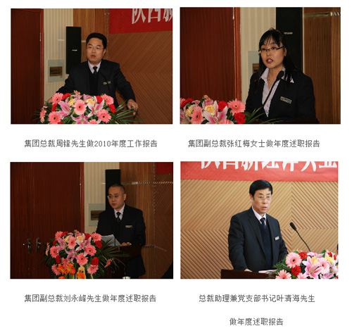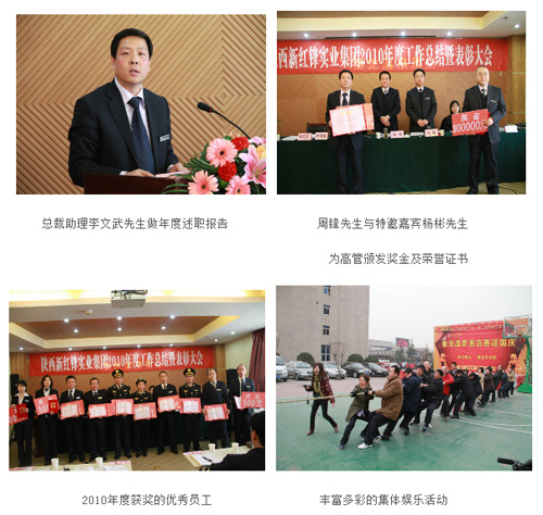 在會上,集團董事長兼總裁周鋒同志首先全面回顧了集團2010年度的奮斗歷程,總結(jié)了企業(yè)在2010年十個主要發(fā)展亮點,充分肯定了各部門各員工的工作成績,對2011年工作,提出了目標(biāo)和要求,八位高管、分(子)公司總經(jīng)理和部門經(jīng)理先后向大會報告了工作,兩名員工代表作了表態(tài)發(fā)言,大會對做出優(yōu)異成績的十名員工進行了表彰,對作出特殊貢獻的副總裁劉永峰和特別敬業(yè)的總裁助理李文武兩名高管予以重獎。