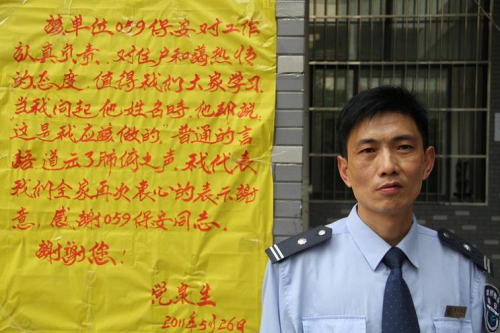 22日下午,工號059的社區(qū)保安員焦全勝在巡邏期間發(fā)現(xiàn)一男子行跡可疑、匆匆離去,后發(fā)現(xiàn)一輛電動車車鎖被撬開。焦全勝急忙將電動車挪到物業(yè)部門口,并用物業(yè)部大鎖將車子鎖起,等待車子主人。25日下午,焦全勝在巡邏期間發(fā)現(xiàn)一男子與22日下午的那名可疑男子非常相似,于是在通知其他隊員后對該男子實行跟蹤,在該男子行竊之時與隊員將其現(xiàn)場抓獲,并扭送派出所。興慶路派出所對此案非常重視,所長董艷軍親自審理了此案,并通過嫌疑人揪出了幕后偷竊、銷贓一條龍的犯罪團伙。